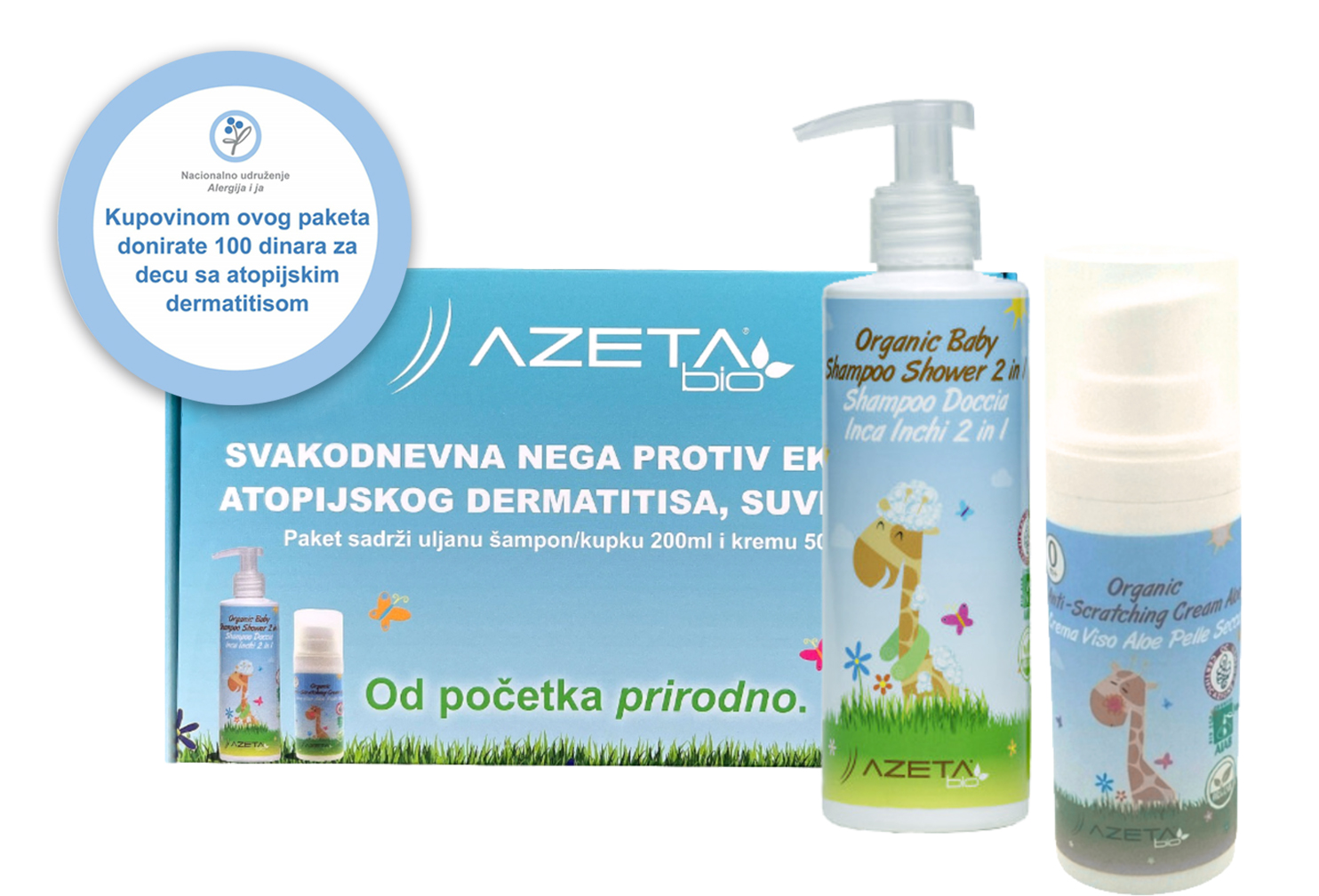 U okviru projekta „Pogledaj ispod kože“, Azeta Bio je važan partner u podršci osobama sa atopijskim dermatitisom. Njihova kozmetika, bez veštačkih mirisa i štetnih dodataka, koristi se kao deo preporučene rutine za negu atopične kože, čime doprinosi smanjenju simptoma i očuvanju barijerne funkcije kože. Azeta Bio učestvuje i u edukaciji roditelja i zdravstvenih radnika o važnosti svakodnevne pravilne nege.