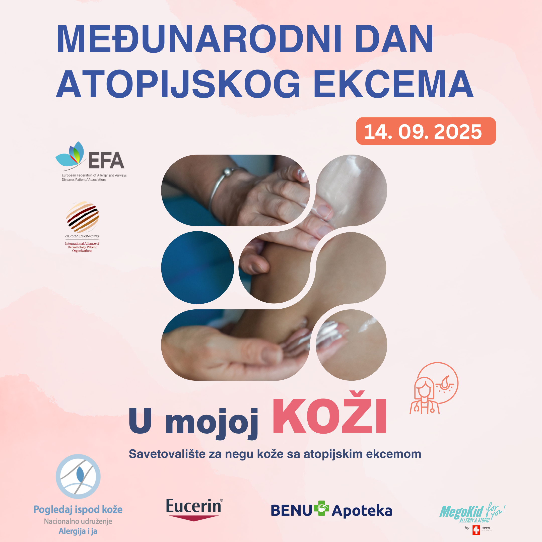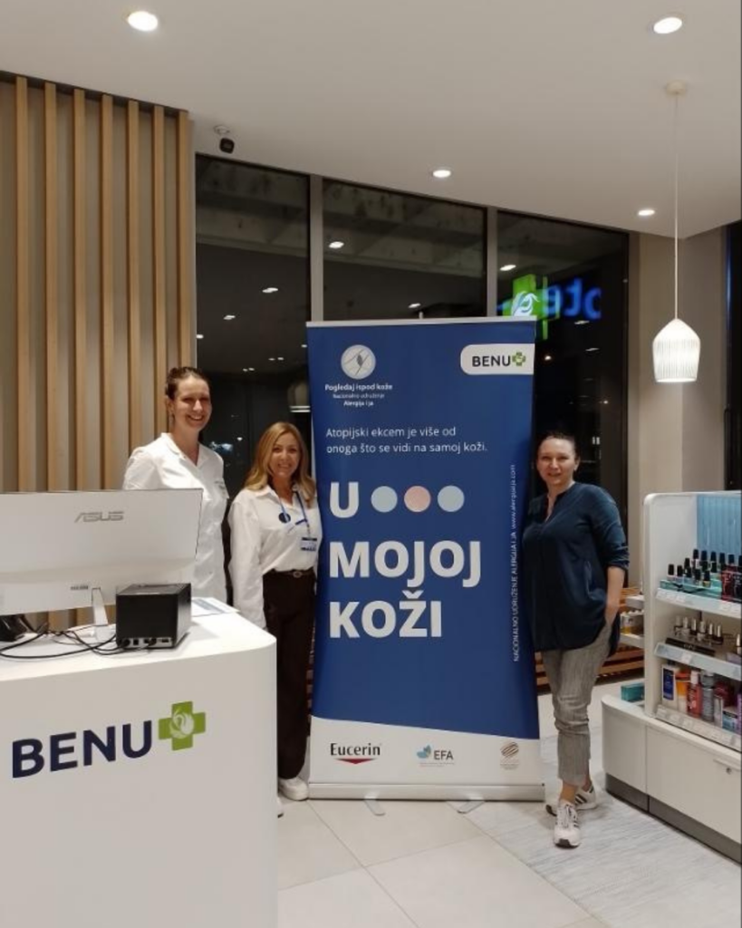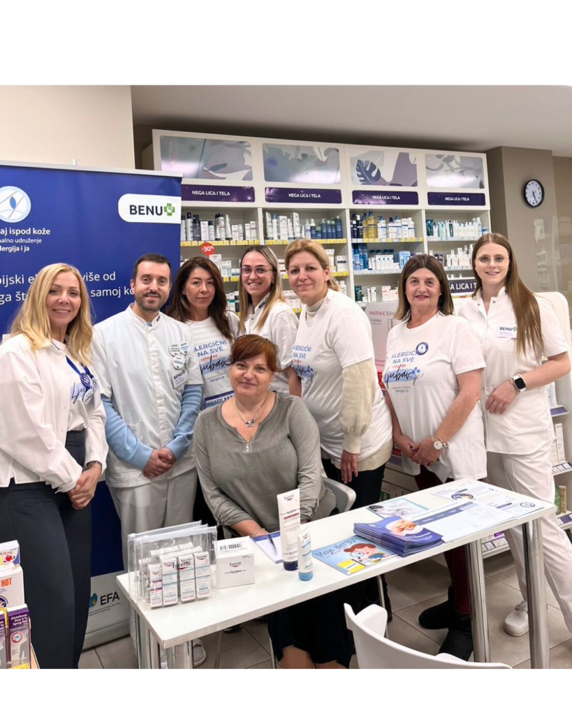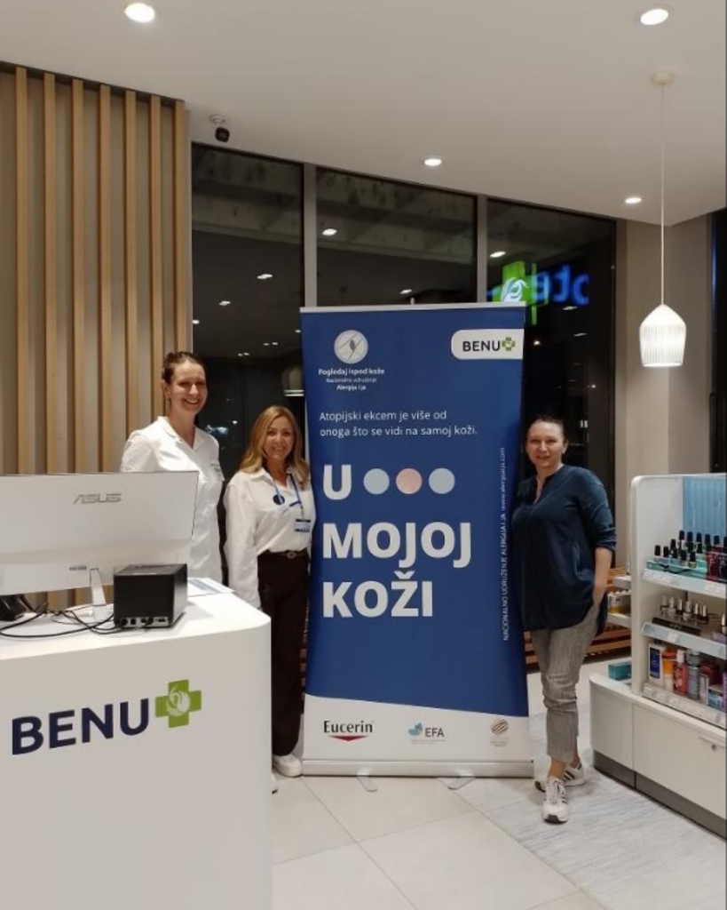 Nacionalno udruženje „Alergija i ja“, uz podršku krovnih međunarodnih organizacija GlobalSkin i European Allergy and Airways Patients’ Platform (EFA), a pod pokroviteljstvom kompanije Beiersdorf – Eucerin, u saradnji sa BENU apotekama i kompanijom 4UPharma, realizovalo je tokom kampanje „U mojoj koži“ niz besplatnih dermatoloških savetovališta širom Srbije.
