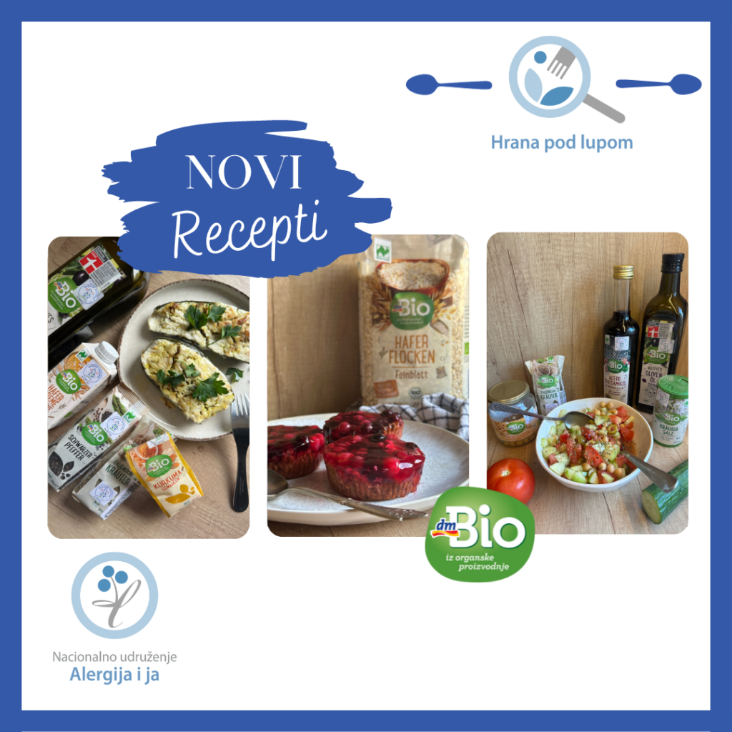 Uz pomoć i podršku kompanije dm drogerie markt prikupljamo informacije kojima ćemo olakšati čitanje deklaracija, izbor adekvatnog proizvoda bez alergena, kupovinu namirnica i druge edukativne informacije u vezi ishrane bez alergena i obezbediti nedeljne jelovnike bez alergena i recepte bez alergena, koja kreira saradnica našeg udruženja, nutricionistkinja Anita Alterov.